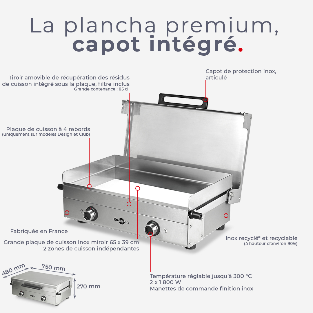 La première plancha électrique Krampouz avec capot de protection en inox intégré, monté sur charnières.