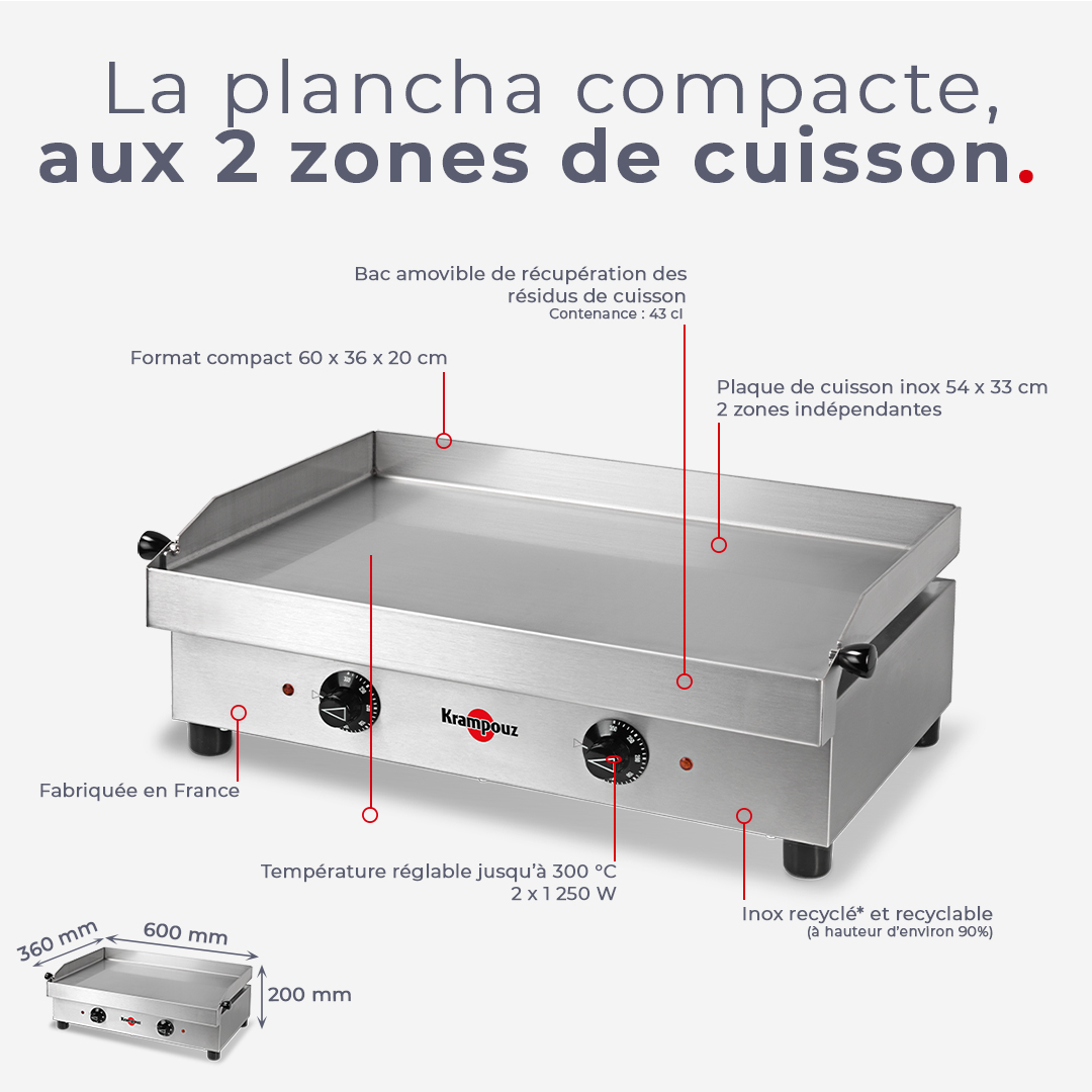 Excellente plancha, cuisson uniforme, pratique avec deux feux indépendants et une plaque pour ramasser les liquide plus qu'utile! Je recommande..