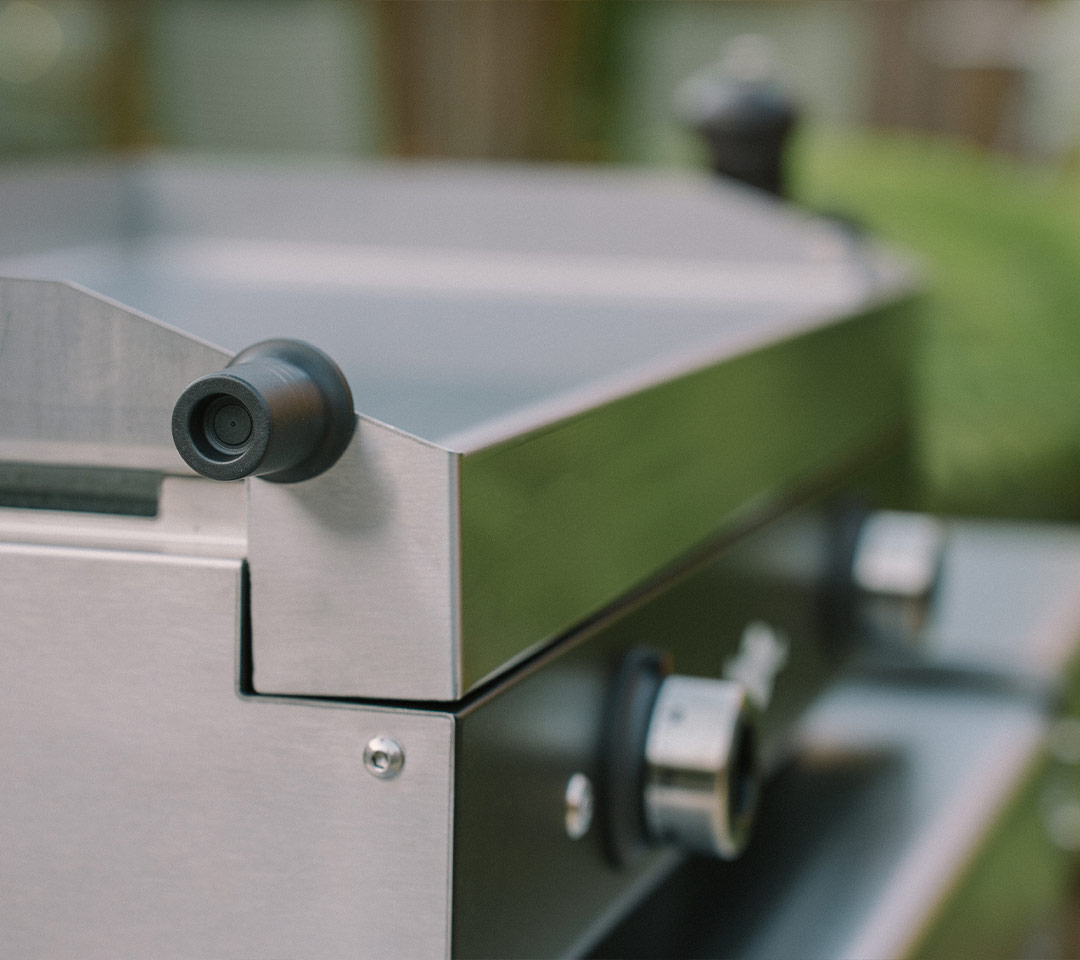 Les deux manettes de contrôle sur la façade de la plancha offrent un réglage précis de la température des zones de cuisson : les deux thermostats se règlent facilement jusqu’à 300°C et permettent d’adapter la température aux différents aliments cuisinés.