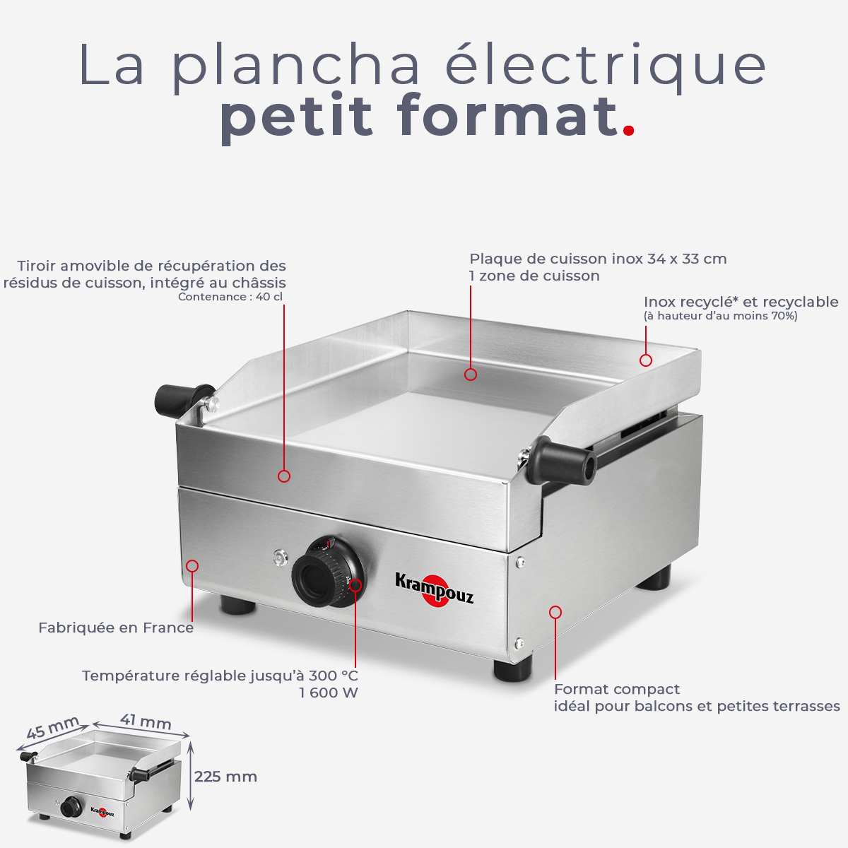 La plancha Smart électrique est une plancha avec plaque en inox certifiée contact alimentaire. Équipée d’une zone de cuisson , elle permet de cuisiner pour jusqu’à 4 personnes.