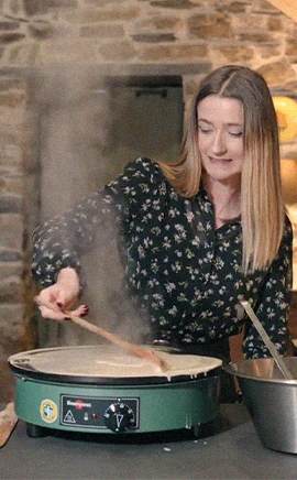 • La technique d’étalement de la pâte à crêpe n’est pas la même selon la forme de râteau choisi : découvrez les bons gestes dans la vidéo à suivre, « les différentes techniques d’étalement de la pâte à crêpes ».
